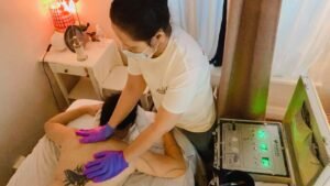 Ultrasound uses deeply penetrating and soothing sound waves that cause gentle microscopic vibration to loosen scarred and tangled muscle , tendon and ligament fibres ,one the soft tissue is breaking down blood flowing is increase, this progress is enhance the healing process then combined with deep tissue massage , trigger point massage. After you get this treatment you will feel loosen and pain free straight away and symptom should get better every day